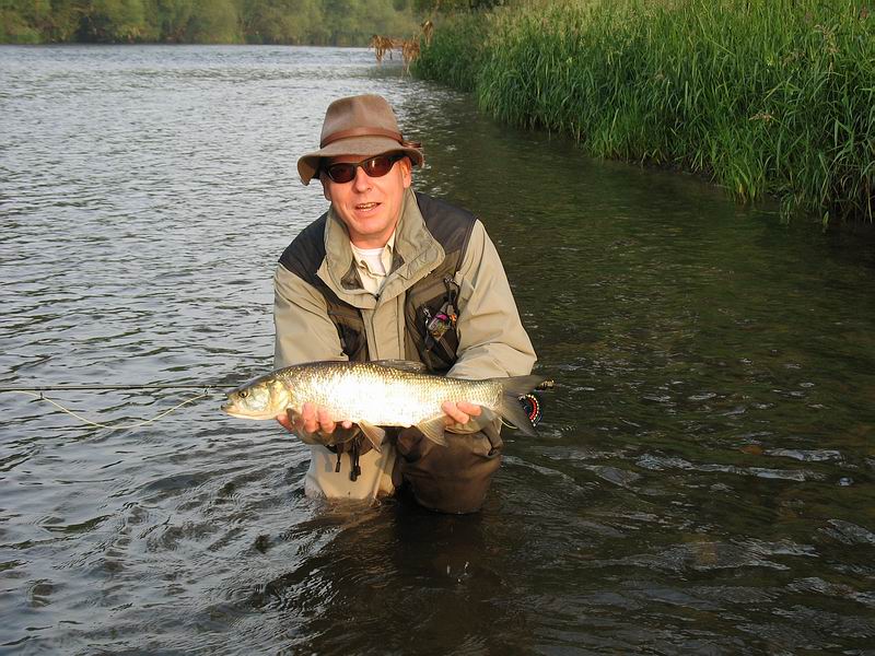 | Der Fliegenfischerei kann man zwischen Wiesen und Feldern meist völlig ungestört nachgehen, dennoch ist jeder Abschnitt der Strecke beidseitig mit relativ wenig Aufwand und nur kurzem Fußmarsch zu erreichen. Da die Strecke recht groß ist und der Fluss breit, sowie die Anzahl der Fischergäste begrenzt, wird man meist allein am Wasser sein und wird immer ein schönes Plätzchen zum Fischen finden. Ich möchte nicht vergessen zu erwähnen, dass in den Sommermonaten tagsüber eine gewisse "Belastung" durch Kanufahrer auftritt, die aber im Grunde kaum stören. Der Früh- und Abendfischer sollte davon sowieso nichts mitbekommen... |
