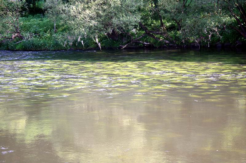 | Bei unserem Besuch fanden wir den Regen nach einem gerade abgeklungenen Hochwasser mit in Richtung Normalwasser fallenden Wasserstand vor. Auf den Fotos sehen Sie den Fluss noch ganz leicht "angestaubt", dieser wird bei Niedrigwasser jedoch völlig sichtig und klar, im Spätherbst auch "glockenklar". Einfach war die Fischerei nicht, bei den herrschenden hochsommerlichen Temperaturen, aber besonders morgens und abends war es herrlich am Fluss - und die Fische bissen. Das Gewässer weist einen immensen und vielfältigen Bestand an Köcherfliegen, sowie Eintags- und Steinfliegen auf, auch eine Maifliegenzeit gibt es jedes Jahr. Aus diesem Grund ist die Fliegenwahl weder schwer, noch erfordert sie besondere, auf den Fluss zugeschnittene Muster. Als Fliegenfischer schaut man sich aufmerksam am Fluss um, beobachtet, was gerade passiert in der Insektenwelt und wählt dann das passende Muster aus der Fliegenbox. |