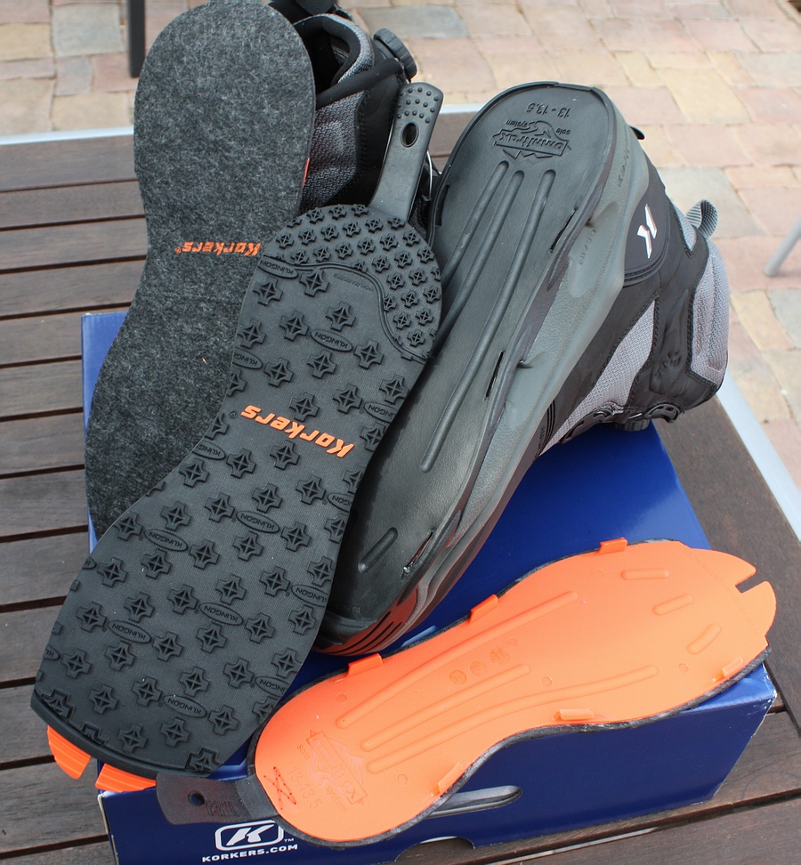 Besprechung: Fliegenfischer-Watbekleidung Korkers DarkHorse Watschuhe mit Wechselsohlen |