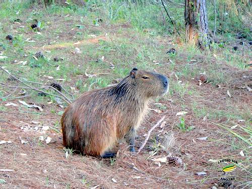 | 28m, der ideale Wasserstand zum Lokalisieren der Jagdreviere | Unten: das Carpincho, eines der größten Nagetiere |