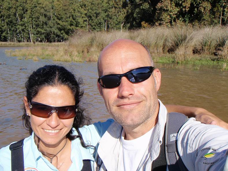 Aber außer einem Biss tut sich weiter außerhalb des “Hot Spots” nichts mehr. Also zurück, immer wieder auf den Zehenspitzen balancierend, das Wasser ist noch zu frisch, als das ich es in meinen Wathosen genießen würde. Ich fasse es nicht, Carolina ist schon wieder im Clinch mit einem Goldenen, mit vollem Körpereinsatz bringt sie den Kämpfer näher, aber er ist ausdauernd und ungleich meines Fanges ein cleverer Stratege, dem es mehr als einmal gelingt, sein Gegenüber auszutricksen. Aber sie weiß den “Tigre del lago” zu bändigen und zu unserem Erstaunen ist er wesentlich kleiner als seine Kampfstärke hätte vermuten lassen, ein Foto und adios. Das Casten in diesem Bereich ist wahrhaft für Puristen, keine Möglichkeit für einen 45° Wurf, weil die Dorados weiter draußen aktiv sind und kein Rückraum vorhanden ist. Wasser bis zur Oberkante Unterkante, hinter dir der hohe Schilfgürtel und wie es kommen musste, löse ich mehr als einmal unter den hämischen Blicken der Dorado Göttin meine Mücke aus dem Schilf. |
