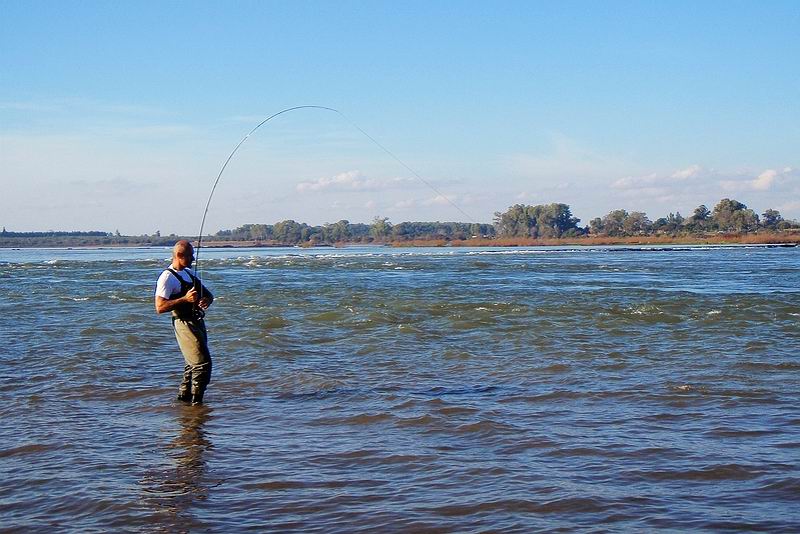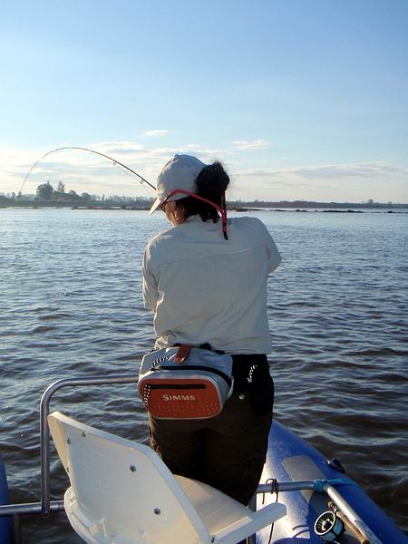 Das Fliegenfischen in Argentinien ist meist assoziiert mit Patagonien selbst, dem klassischen Ziel der Flugangler. Hier oben bei uns in den nördlichen Provinzen Argentiniens war bis vor einigen Jahren der Fliegenfischer ein unbekanntes Objekt. Ausnahmen gab es. In der letzten Zeit entwickelt sich eine kleine Fliegenfischerszene in Concordia selbst. Der Unterschied? Catch & release! Der Dorado ist ein wohlgeschätztes Kapital der Berufsfischer. Nicht zu schweigen der allgemein üblichen Entnahmekultur ohne Grenzen und fehlender Kontrollen. Ein Reglement existiert, das Schonzeiten des Dorados festlegt. Die Mindestgröße eines zur Entnahme freigegebenen Dorados ist bestimmt: 65 cm sind es hier. Die Schonzeit läuft von Mitte November bis Januar. |