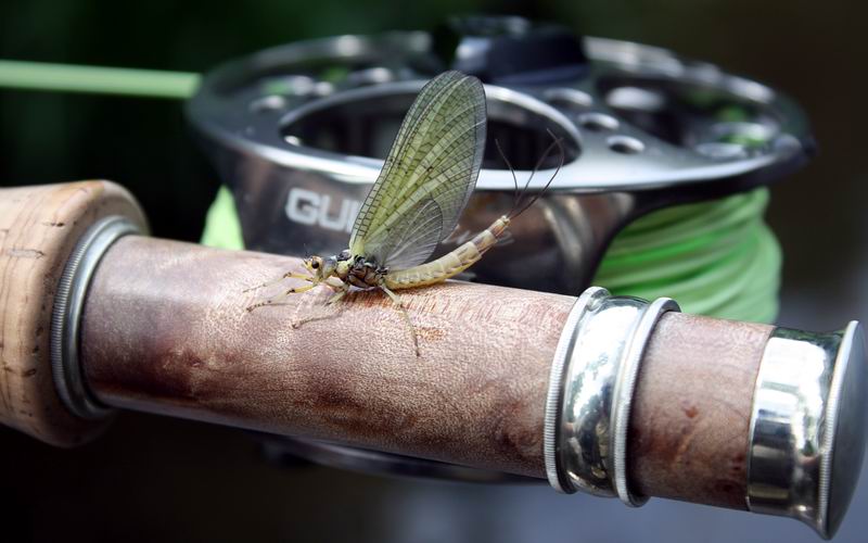 | Hurra - die Maifliegen sind da! Wenn für andere Angler das Ende der langen Winterschonzeit oder das Aufbrechen der Eisdecke auf dem See im Frühjahr ein ganz besonderes reizvoller Weckruf ist, bedeutet für die Fliegenfischer das alljährliche Erscheinen der Maifliegen die höchste Zeit des Fliegenfischerjahres! Diese große, eindrucksvolle Eintagsfliegenart mit bis zu 5 cm Flügelspannweite und bis zu 7 cm Körperlänge, über die an vielen Orten in Europa schon so viel geschrieben wurde, taucht von Ende Mai bis Mitte Juni auch bei uns an der Ilm in größerer Anzahl auf, um ihren Hochzeitsflug abzuhalten - und zugleich ihren letzen Flug. |