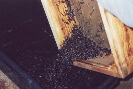 die kleinen Forellen werden zum Wiegen umgeschüttet...