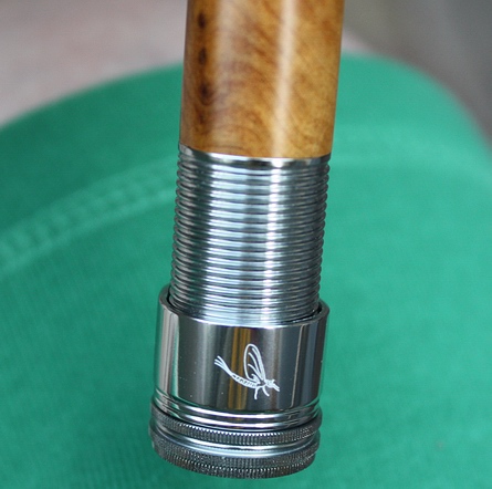 Die Fario CRS kann man schon in Sachen Optik, Ausstattung und Verarbeitung einfach nur als perfekt gelungen beglückwünschen: alles kommt auf höchstem Niveau! Die farbliche Abstimmung in warmen Oliv- und Bernsteintönen passt, der Blank und die Verarbeitung sind absolut korrekt, das Gleiche gilt für die Beringung und Lackierung. Die feine Recoil Beringung ist das Beste und Leichteste, was man einer hochwertigen Fliegenrute heutzutage gönnen kann. Die Qualität des Korkgriffes ist allererste Sahne, hier wurden nicht nur beste, feine Korkscheiben verwendet, sondern auch die Kanten ordentlich gerundet (na also, geht doch!). Der Griff ist ausreichend lang und im Durchmesser sowie mit seiner angepassten Form praxisgerecht dimensioniert. Der sehr leichte Alu-Rollenhalter mit Einzelmutter und schöner Maifliegengravur komplettiert die gute Ausstattung perfekt, er bietet mit seinem großzügigen Schraubweg genug Reserven für das Aufnehmen der gängigen Rollenfüße. Seine schöne Holzeinlage aus feinstem Maserknollenholz ist ebenfalls ein Hingucker! Die Steckverbindungen wurden gut aufeinander abgestimmt, sie greifen ausreichend tief ineinander (siehe oben) und halten die Rute zuverlässig zusammen. Markierungen als Hilfe beim Zusammenstecken der Rute fehlen hier. |