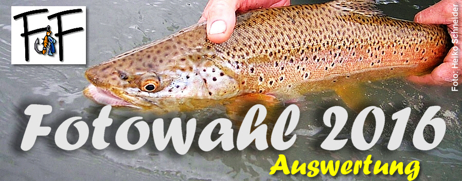 Ihr habt gewählt: Insgesamt 244 von Euch haben sich an der Foto-Wahl beteiligt und insgesamt 723 Einzelstimmen abgegeben, dafür vielen Dank! Die gemischte Fotogalerie 2016 enthält wieder eine Vielzahl an guten bis ganz hervorragenden Bildern, so dass eine Entscheidung sicher oft schwierig war. Die Stimmen sind deshalb über viele verschiedene Bilder verteilt, bis auf einige Ausnahmen, welche sich beizeiten an die Spitze absetzten. Aus diesen Gründen bekam das eine oder andere gute Bild nicht genügend Stimmen für eine Spitzen-Platzierung zusammen, obwohl es dies vielleicht auch verdient hätte... Das ist zwar schade, aber in einer solchen Abstimmung nicht zu ändern. Ihr habt aus den insgesamt 256 in die Galerie 2016 eingestellten Bildern 150 verschiedene Fotos mit Stimmen belegt, also rund 60%. Die Zuschriften kamen neben Deutschland, Österreich und der Schweiz auch aus einigen anderen europäischen Ländern und selbst aus Übersee. Im Ergebnis habt ihr jedoch auch wieder ganz klare Favoriten ermittelt und insgesamt mit einer erstklassigen Auswahl großartigen Geschmack bewiesen! Besonders stimmungsvolle und außergewöhnliche Bilder am Fischwasser stehen nach wie sehr hoch bei euch im Kurs (ebenso wie generell Maifliegenbilder, Morgen- und Abendstimmungen, Unterwasserbilder und gut gemachte Tierfotos). Aber auch bei anderen Motiven beweist ihr den richtigen Blick fürs ganz besondere Bild! Noch ein paar Worte