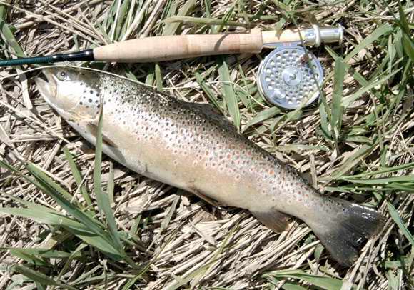 Hallo zusammen ! Wieder eine schöne Bachforelle ( 38 cm ) aus der Abens bei Abensberg. Gefangen im April 2004 auf Trockenfliege. Kämpfte am # 2/3’er Gerät wie eine Granate. Foto und Copyright: Frank Haug