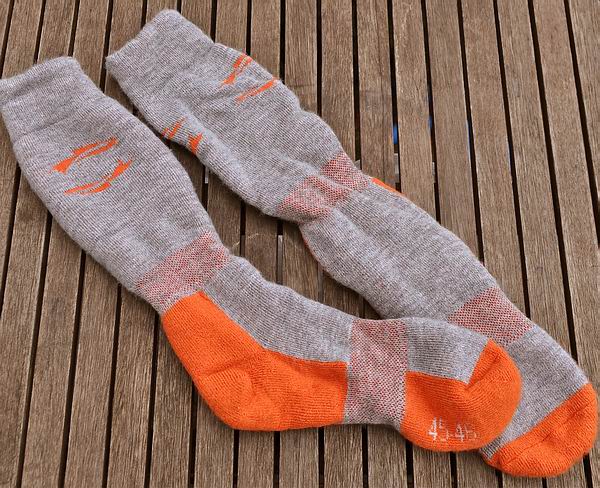 - Farbe: grau-meliert /orange - Material: Merinowolle-Polyester- Spandex-Mix - flache Zehennaht - in 5 verschiedenen Größen erhältlich (37-38, 39-40, 41-42, 43-44 und 45-46) - Maschinenwaschbar im Schongang - Preis: 19,- EUR Test-Feedback: Testdauer: 12 Monate Es geht eigentlich nicht schnell genug, diese Strümpfe nach dem Tragen zu waschen und wieder anzuziehen! Eigentlich als Watstrümpfe konzipiert, sind es die perfekten Socken, um sie während der kalten Jahreszeit jeden einzelnen Tag zu tragen. |