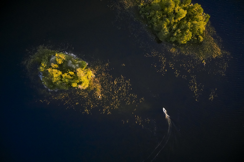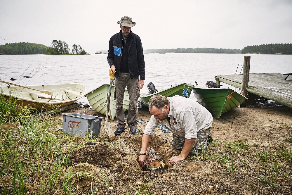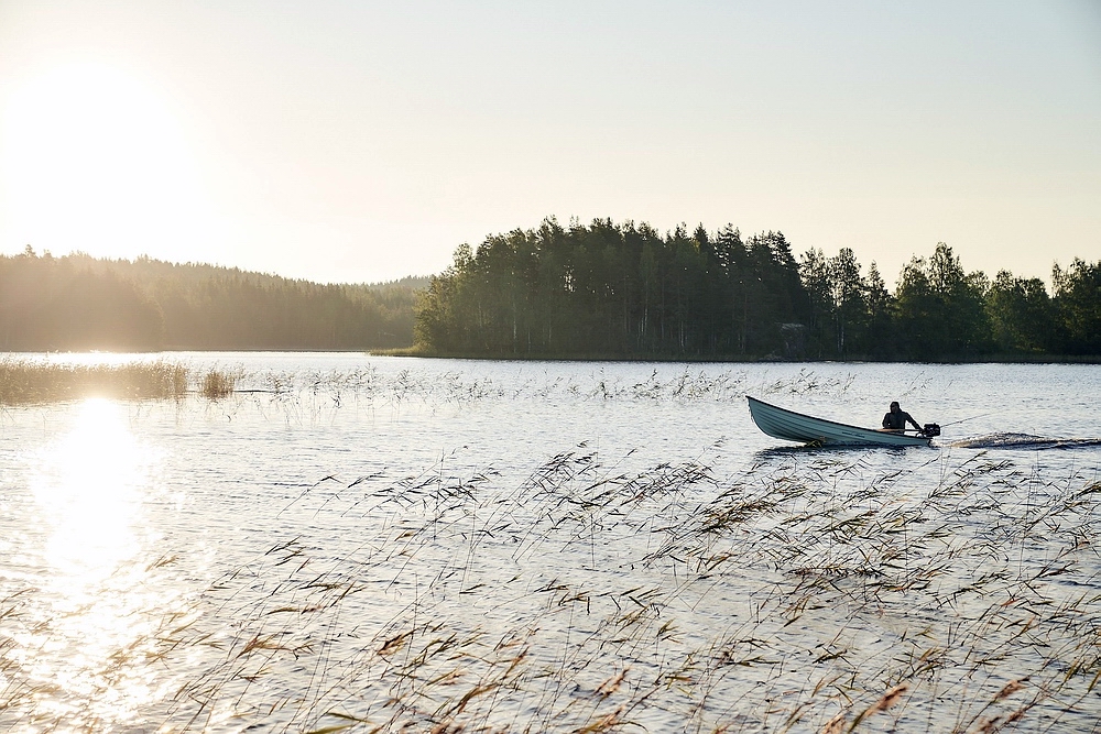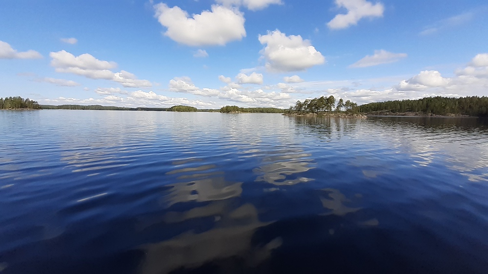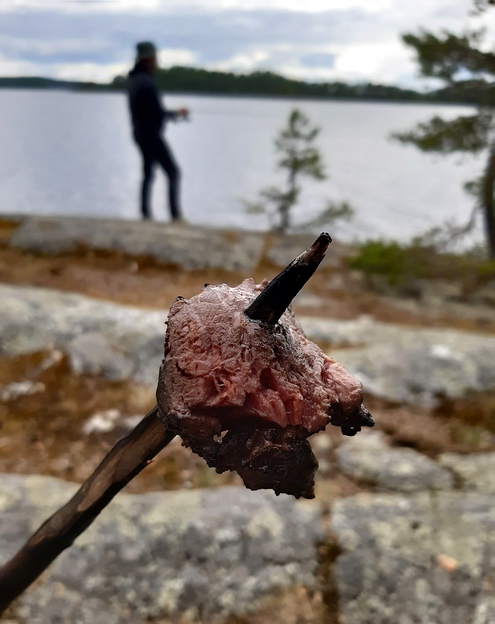 | Es hieß, wir erkunden das Wasser und die Spots. Auch wenn das Frühstück nicht besser sein können, war ich denn doch heiß auf Fischen. Nachdem wir alle beim graved Fisch zugesehen hatten, ihn gemeinsam verbuddelten und ein frisches Rührei mit selbst gepflückten Pfifferlingen erhielten, ging´s los. Zu jedem Haus gehört ein Boot mit Außenbordmotor und Ruder. Ein seetauglicher Rumpf, der einfach zu Händeln ist und stabil im Wasser liegt. Jedes Boot verfügt über ein Iphone mit Karte. Warum? Ganz einfach, der See ist ein Teil des Siamaa, tausende Inseln und tausende Kilometer, über die sich diese Wasserlandschaft erstreckt. Um sich lokal zu orientieren, wird es irgendwann schwer, wenn man neu ist. Die Vegetation und Inseln ähneln sich sehr, hat man sich einmal umgedreht, sieht es völlig anders aus, als man es in Erinnerung hat. Wenige zivile Anhaltspunkte wie kleine Hütten oder mal ein prägnant umgekippter Baum, lassen alles recht gleich ausschauen. |