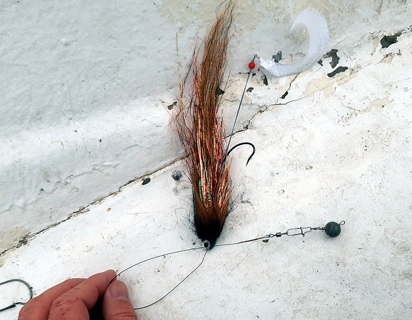 | Am kommenden Morgen war ich um 6:29 Uhr verabredet und war um 6:28 und 59 Sekunden am Steg, um Ruan abzuholen. Ebenfalls ein Gast des Camps. Raus zum Fischen hieß das Motto. Wir fuhren die ersten Stellen an und es wurde uns schnell klar, so einfach wir es nicht. Die Fische standen tief und es war sehr windig. Nicht so klasse zum Fliegenfischen. ABER die Herausforderung wurde angenommen und alsbald mit einem schönen Hecht belohnt. Wenn ich nun erzähle wie ich diesen in ca. 16m Wassertiefe gefangen habe, ist das doch recht ungewöhnlich fürs Fliegenfischen. Erst die intermediate Schnur in Klasse #8, dann Fluorocarbon, dann Stahlvorfach und zu guter Letzt vor dem 25 cm Streamer ein 15g Blei, um auf Tiefe zu kommen. Aber es geht!!!! | ![]() |