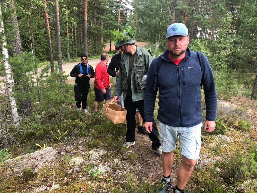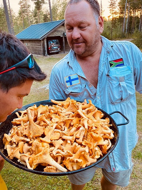 | Ab ins Gehölz, eine Wandertour quer durch den Wald, Pilze suchen, stand auf dem Plan. Unfassbar viele Blaubeeren und die verschiedensten Pilze lagen uns zu Füßen. Jeder sammelte in der absoluten stille des Waldes so viel wie er essen wollte und alles kam in einen Korb für ein späteres Gericht. Pfifferlinge wachsen dort wie Rasen auf dem Fußballfeld und die Blaubeeren schmecken so lecker, wenn man zwischendurch Snacken wollte, eine tolle Natur. |