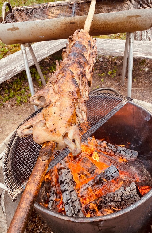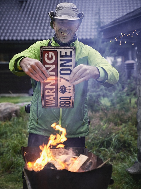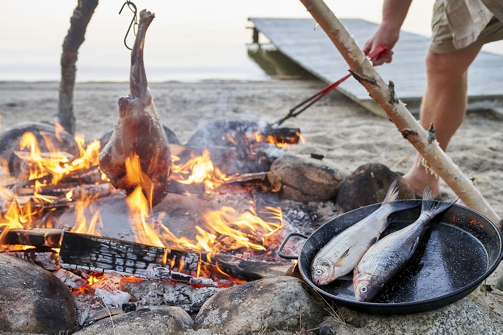 Mit der Begeisterung und dem Wissen um die Spots ließen wir den Abend mit einem ausgezeichneten Mahl ausklingen. Das Lagerfeuer vom Spanferkel brannte bis spät in die Nacht hinein und der See legte sich unter leichtem Nebel in der stockdusteren Nacht vor uns nieder. Nach dem letzten Glas Wein wagte ich es, mit dem Boot zurück zum Haus zu fahren, nicht einfach wenn man seine Hand vor Augen kaum erkennt. Aber so eine Handytaschenlampe tut’s auch und wenn man sich vorstellt, dass die es bringt, kann man sich auch vorstellen wie dunkel es sein kann. |