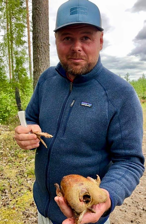 | Ich möchte in diesem Bericht von Finnland erzählen, ein Land in dem ich zuvor noch nicht gewesen bin, ein Erlebnis welches einen an die Grenzen der zu verkraftenden Eindrücke bringt. Um den langweiligen Flug mit Maskenpflicht und die ewige Warterei zu umgehen, steige ich direkt gelandet in Helsinki mit dieser Story ein. Mein gesamtes Material wurde vorausgeschickt und war schon in der zu beziehenden Blockhütte, somit war nur kleines Gepäck für eine Woche dabei. Unser Gastgeber Roland Birr empfing mich und vier weitere Gäste am Flughafen, er war pünktlich bei uns, hatte sich aber aufgrund eines kleinen Reifenplatzers etwas verspätet. Die Finnen sind gelassen, so wurde die kleine Panne mitten in der Wildnis locker behoben und der Zeitplan war mit einem kalten Bier vom Gastgeber perfekt abgerundet eingehalten. | ![]() |