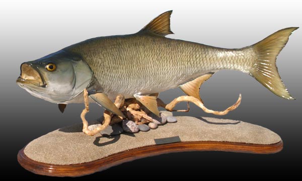 künstlerisch gestaltete Fischpräparate der Firma FIPRO, mit Technik