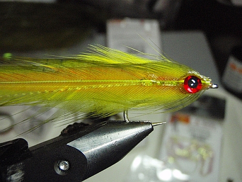 versuche mal nicht zu viel Marabou in deine Streamer einzubauen. Marabou hat die Eigenschaft gerne viel Luft zwischen den Fibern zu binden. Das führt dazu, dass der Streamer ewig nicht richtig durchnässt wird und dadurch schwimmt. Zum anderen klatschen die Federn/Fibern dann zusammen und spielen nicht wie gewollt im Wasser. Hab das selber schon bei einigen Mustern durch und verwende Marabou jetzt fast nur noch als Schwänzchen oder sparsame Hechel. Ansonsten kannst du mit deiner Farbwahl nicht viel falsch machen. Vielleicht nicht zu viele verschiedene Farben in einem Streamer verwenden.
