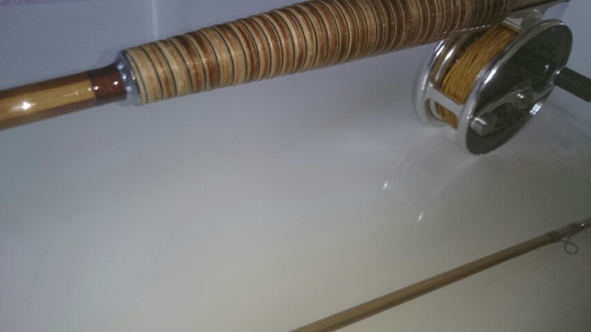 Taper ist ein etwas modifiziertes Orvis Flea Taper mit langezogenen Swell. Rollenhalter selbstgedrechselt aus Bambus und die Wicklungen sind braune Seide mit schwarzen Zierwicklungen. Diesmal habe ich die Wicklungen vorher farbfixiert.