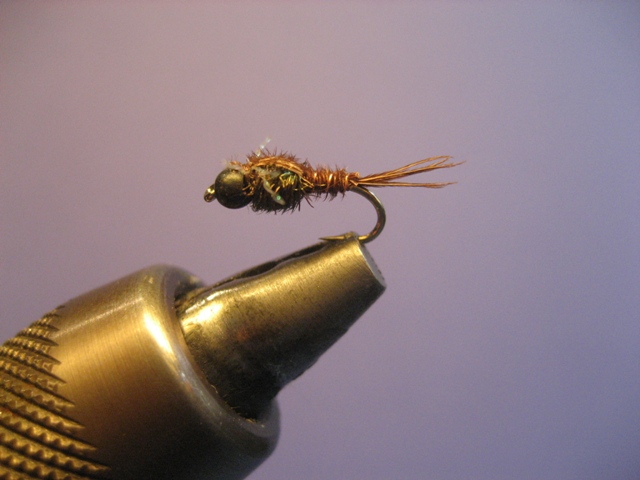 Eine mini Pheasant Tail mit Tungsten Kopf und Micro Flash in #16 ein Frohes Osterfest euch allen,