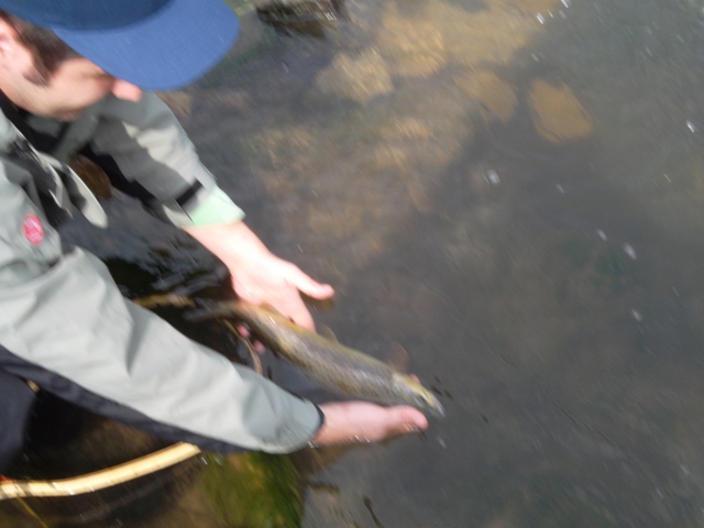 Wir hatten einen sehr guten Tag auf dem Fluss und auch einige Forellen auftauchen.