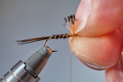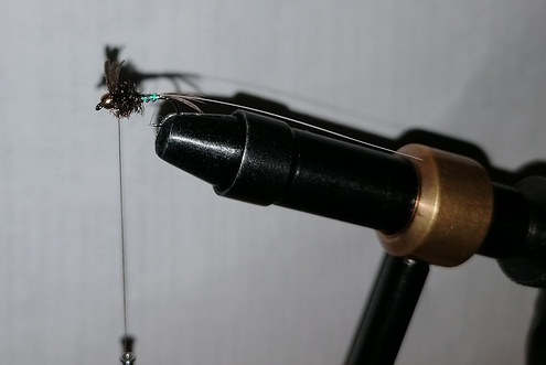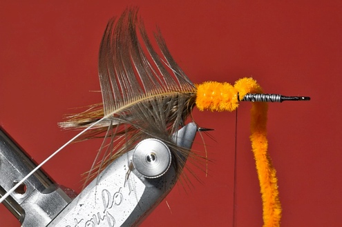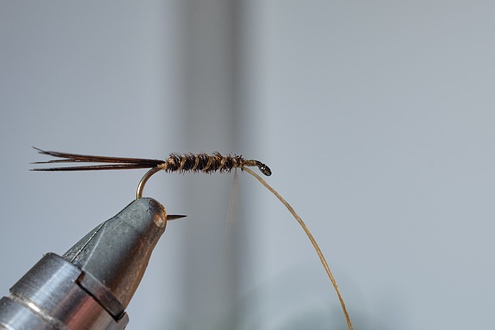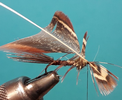 | Nochmals Fasanenfibern einbinden, wie auf dem