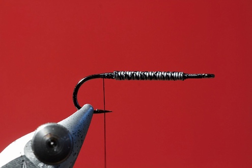 Abdomen aus Tinsel wickeln und mit Draht rippen