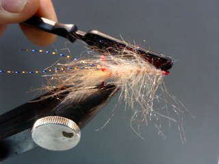 angelegt und eine Grundwicklung angebracht, dann wird das Tinsel vor dem "Schlagpunkt" eingebunden. |