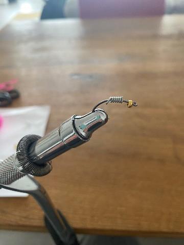 in engen oder weiteren Windungen Richtung Öhr winden,