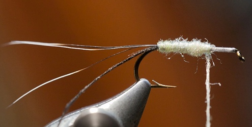 (4) Etwas vom groben Hasen Dubbing anbringen.