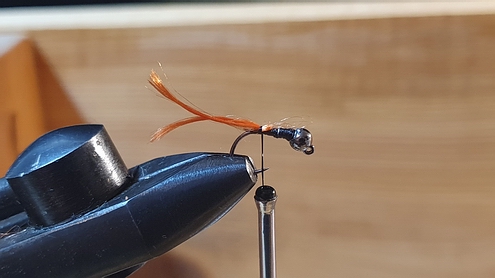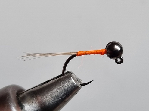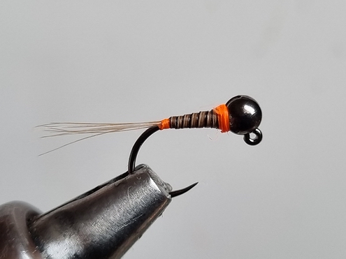 Ich habe zwar keinen direkten Vergleich zu andersfarbigen Kopfperlen, bin aber dennoch von der Ausführung mit schwarzem Kopf überzeugt. An Gewässern mit hohem Befischungsdruck sicherlich nicht die schlechteste Wahl. Ich habe die Fliegen mit folgenden Materialien gebunden: - Haken: Jig-Haken Gr.14