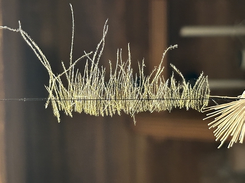 | 6. (Foto oben rechts): CDC Fibern im Faden einspannen