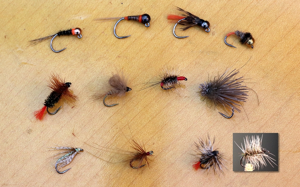 Das rote Schwänzchen und der Körper sind bei beiden Mustern gleich. Besonders im Herbst und in der kurzen Winterphase, bevor die Schonzeit einsetzt, sind die Muster besonders erfolgreich auf Äschen. Beide sind gute und wirksame Nachbildungen all jener kleinen Landinsekten, die vom Frühjahr bis Herbst ins Wasser fallen. Viele sehen in den Mustern auch Eintags- und Köcherfliegen in einer bestimmten Schlupfphase. Weil wir die Fische nicht fragen können was sie in diesen Mustern sehen, werden wir nie erfahren warum diese so fängig sind. Materialien für die