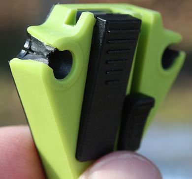 In der Praxis bewährte sich das kleine, geniale und korrekt verarbeitete Tool hervorragend und alle Funktionen erwiesen sich als durchdacht, logisch und einfach bedienbar. Die beiden Einfädler verfügen über kleine Trichter, in welche das Hakenöhr eingelegt und zentriert wird. Anschließend wird das Vorfachende durchgeführt - und das war's schon! Während man den Haken in den einen Trichter des Einfädlers einlegt, kann das Vorfachende auch im anderen Einfädler "geparkt" werden. Durch Bindelack verklebte Hakenösen werden mit der bei Nichtgebrauch sicher versenkten Nadel freigestochen und die bei sachgemäßem Gebrauch langlebigen Hartmetallschneiden sorgen jederzeit für einen sauberen Schnitt (auch einen angeschrägten!). Einzige Bedingung für das tadellose Funktionieren der Einfädlers ist im übrigen ein freies, unverdecktes Hakenöhr. Durch Kopfwicklungen oder Goldköpfe halb verdeckte Hakenöhre "funzen" logisch nicht... |