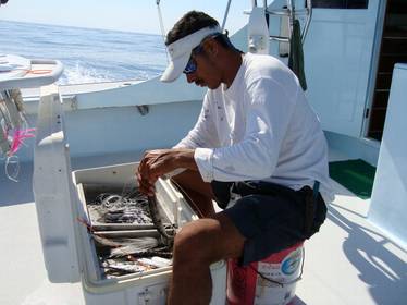Was ich jedoch bestätigen kann, dass diese Knoten sehr oft und einwandfrei durch die Rutenringe flitzen können. Anschließend an die Gerätemontage bekam ich einen Kurzvortrag über die Besonderheiten des Fischens auf den Pacific Sail in Guatemala. Es ist immer ratsam, da aufmerksam zuzuhören. |