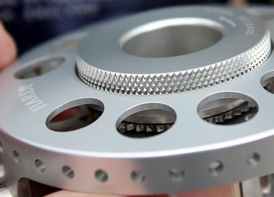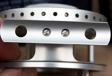Leichte Mittelkern-Fliegenrolle in moderner, ansprechender Optik mit klassischen Elementen, aus dem vollen Aluminiumblock gedreht und gefräst. Die Oberfläche ist mattsilbern anodisiert. Laut Hersteller (von uns nicht geprüft) ist die Rollenserie für den Einsatz im Salzwasser geeignet. Die kugelgelagerte Spule läuft achsenlos und perfekt rund im geschlossenen Rollenrahmen (die beste Lösung für eine sichere Schnurführung und höchste Rollenstabilität). Die gehäuseseitige Platzausnutzung ist gut, jedoch nicht ausgeschöpft. Die Rollenrückseite ist bis auf eine Lochreihe geschlossen. Der Spulenkern ist offen, der Spulenboden wurde zur optimalen Belüftung durchgehend langgelocht, die Spulen-Vorder- und Rückseite, sowie der leicht übergreifende Spulenrand mit mehreren durchgehenden Lochkränzen versehen. Am Gehäuse befinden sich drei Stege: hinten ein etwas breiterer, vierfach gelochter Steg für den zweifach von außen angeschraubten, auf zwei kleinen Säulen sitzenden Rollenfuß, sowie seitlich oben und unten, etwas nach vorne gezogen, jeweils ein schmaler Steg für die Schnurführung - die ideale Anordnung, da die Vorderseite damit komplett Steg- (und Hindernis-)frei ist. Auf der Spulenvorderseite befindet sich eine schöne, angenehm große und griffige Kurbel aus Edelstahl, welche butterweich, absolut spielfrei und perfekt läuft. Ihr gegenüber sorgt ein Kontergewicht für einen tadellos ruhigen Spulenlauf. Scharfe Ecken und Kanten sucht man bei der Marksman Rolle vergeblich, ebenso gibt es absolut keinerlei störendes Spiel, kein Kippeln der Spule in ihrer Führung, kein Schlagen und nirgendwo zu große Abstände - das alles spricht für eine äußerst präzise Verarbeitung. |