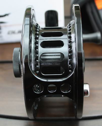 Optisch, sowie von Gewicht und Größe her passt unser Testmodell Haze 68 am besten zu # 7er und # 8er Fliegenruten. Das Fassungsvermögen ist mit einer 8er WF-Schnur und um 150 Meter 20lb-Backing prima und kann sich für eine echte Großkern-Fliegenrolle sehen lassen. Hier wird durch die breite Spule viel an Kapazität gewonnen. |