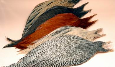 | Seit kurzen sind sie im Baker Flyfshing Programm: Howards Hackle Bälge aus Kanada - eine echte Alternative zu den bekannten Top U.S.-Hahnenbälgen - in sehr hoher Qualität. Verfügbar sind Kragen- und Sattel-Bälge sowie Mikro-Barb-Sattelbälge. Die Howard-Hackle Farm ist ein kanadischer Familienbetrieb. Das kalte, kanadische Klima verschafft den Tieren ein Gefieder, das eine wesentlich höhere Fiber-Dichte als bei ihren US-amerikanischen Artgenossen aus wärmeren Landstrichen aufweist. Einige Insider schwören schon länger derart die Howards-Qualität, dass sie mit keinen anderen Bälgen mehr binden. Die Hühner stammen übrigens aus dem gleichen Stammbaum (Miner/Darbee) wie Whiting, Metz u.a. und brauchen sich auf gar keinen Fall hinter den großen Marken zu verstecken. Bei Baker Flyfshing sind derzeit (Stand 3/2007) Hahneskalps in den Qualitässtufen Grade 1 und 2, in den Naturfarben Grizzley, Cree and Bar Ginger, Blue Dun, Creme and Black, Brown und Dark Brown, sowie als gemischter | ![]() |
