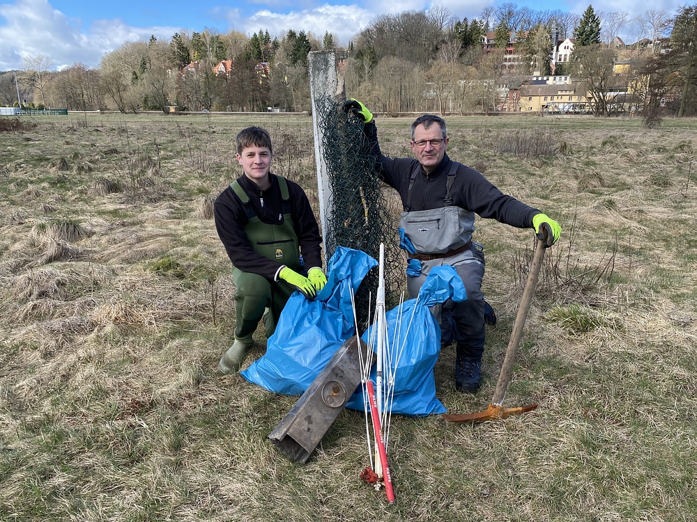 Dennoch waren am und im Gewässer genug Arbeiten zu erledigen, die 17 Mitglieder des Vereins leisteten 2021 in an den beiden Pachtgewässern des Vereins Ilm und Schwarza wieder eine ordentliche Stundenzahl an ehrenamtlicher und gemeinnütziger Arbeit. Zu tun gab es auch 2021 wieder jede Menge, z.B. Fischbesatzmaßnahmen sowie Gewässer-, Uferpflege- und Aufräumarbeiten. Corona-bedingt musste der traditionelle, alljährliche und gesellige Frühjahrsputz an der Ilm gemeinsam mit der Stadt Bad Berka leider ausfallen. Wir lösten das Problem der nicht erlaubten gemeinsamen Aktion, indem wir wie schon 2020 die Kontrollgänge am Gewässer und das Müllsammeln einzeln oder zu Zweit durchführten. So kamen (leider) auch wieder einige Säcke mit Unrat zum Abtransport zusammen. |