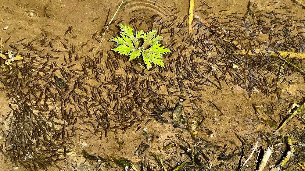 Nebengerinne der Ilm mit einem Gewimmel von Kaulquappen, noch 2021 häufig