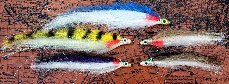 | In enger Zusammenarbeit mit Pro-Guides stellte Inselcrew kürzlich eine neue Kollektion Salz- und Süßwasserstreamer mit Epoxy-Kopf vor, wir haben uns 5 Stück davon näher angeschaut. Die Streamer sind 9 - 15 cm lang, vollständig aus Synthetikmaterial gefertigt und imitieren verschiedene Fischarten aus dem Salz- und Süßwasserbereich: es gibt je ein Modell "Kleiner Brutfisch", "Kleine Regenbogenforelle", "Kleine Makrele", "Kleiner Hecht" und "Kleine Bachforelle". Alle Fliegen wurden sehr korrekt auf starke und scharfe Black-Nickel- Salzwasserhaken gebunden, mit sauber geschlossenen Fliegenöhren und feinen, leicht andrückbaren Widerhaken. | ![]() |