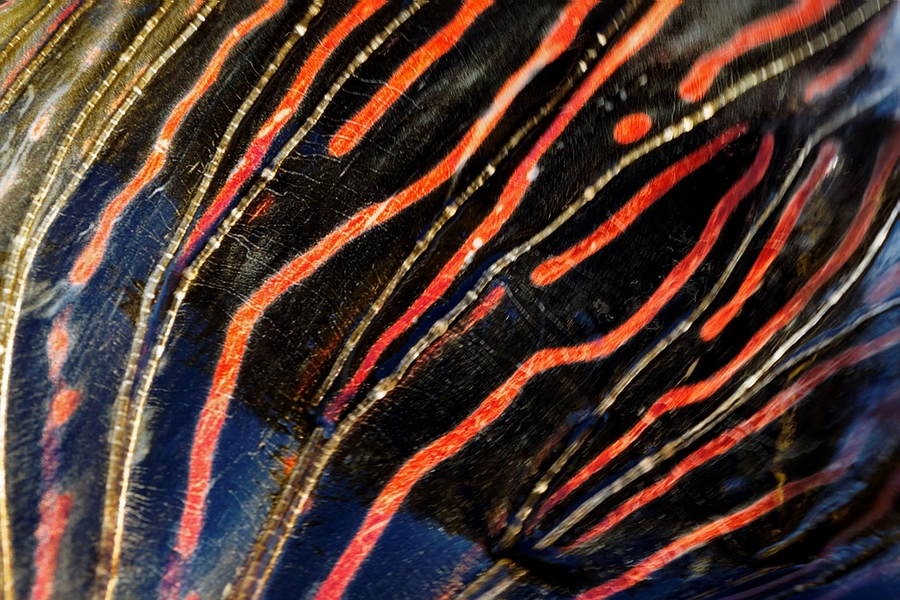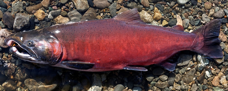 | Die Silberlachse stehen teils bereits auf den Laichplätzen, die nur alle paar Dutzend Kilometer im Bereich von steilen Furten und Nebenarmen liegen. Bei den Laichwanderungen dienen altarmähnliche Buchten als Raststationen, die von Silberlachsen in großer Zahl besetzt werden. Dazwischen fangen wir vereinzelt Pazifische Saiblinge (Salvelinus malma, „Dolly Varden“), die den aufsteigenden Lachsen folgen und sich von deren Eiern und nach dem Ablaichen verrottenden Kadavern ernähren. | ![]() |