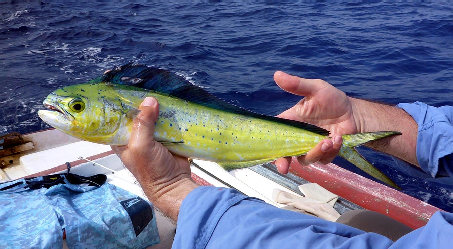 Erfolge beim Schleppen. Wenn die Goldmakrele eine Kapitale gewesen wäre,