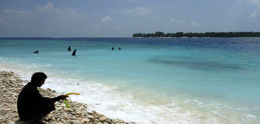 Unser Ankunftstag war Freitag, das ist quasi der Sonntag auf Keyodhoo. Nach der Ankunft im Hafen wurden wir freundlich begrüßt, beim Einchecken in der Unterkunft bekamen wir Kokosnuss und Hawaikette. Danach machten wir unser Equipment |