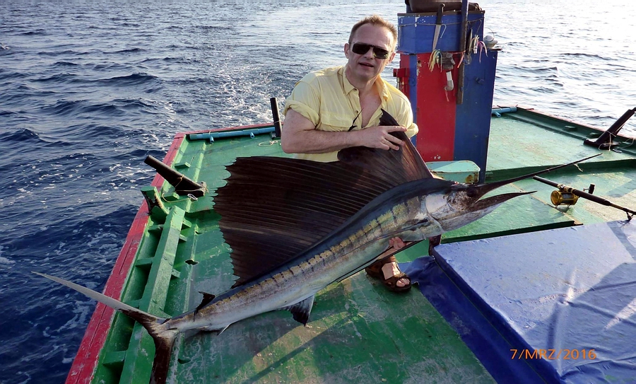 | Auf der Suche nach einem Ziel für unsere jährliche Fischereireise mit meinem Freund Peter hatte ich schon öfters die Malediven gestreift. Fotos von wunderschönen Inseln mit herrlichen Stränden, einzigartigen Farben und ein gigantischer Fischreichtum brachten mich zum Träumen. Die Malediven haben im Indischen Ozean ein sehr konstantes warmes tropisches Klima. Die Temperaturen fallen selbst nachts selten unter 25 Grad. Es gab nur ein Manko - auf den meisten Resortinseln ist das Fischen vom Strand aus nicht erlaubt. Wenn Fischen erlaubt ist, dann nur vom Boot aus - mit dementsprechenden Charterpreisen. Ausnahmen waren selten und dann passten diese nicht zu unserem Reisebudget. Die maledivische Regierung hatte jedoch 2009 die Möglichkeit geschaffen, dass Touristen auf einheimischen Inseln Urlauben können. Ein paar der „Guest houses“ bieten auch die Möglichkeit, Guides und Boote zu mieten. In der Regel wird zwar nicht Fliegenfischen, sondern Schlepp- , Naturköder- und Popperfischen angeboten, aber immerhin. Fotos von großen Segelfischen, Thunfischen, Wahoos und GTs beflügelten meine Fantasie und auch vom Strand der einheimischen Inseln ist das Fischen erlaubt. Sensationell! Unsere Wahl fiel auf die JSL - Jupiter Sunrise Lodge auf Keyodhoo im Vaavu Atoll mit einem Angebot für Big Game Fishing. Ein Anbieter, der sich auf Rundumversorgung mit günstigen Charterpreise spezialisiert hat. Ein Charterboot ist dort bereits ab 275 $ zu bekommen und zwar von 6:00 bis 16:00! Die Buchung verlief unkompliziert und zuvorkommend. Es waren zwar schon einmal Fliegenfischer dort, ob diese etwas gefangen hatten, wusste von der Jupiter Sunrise Lodge keiner mehr. Die Ausrüstung zum Fliegenfischen musste man Mitbringen. Man sagte uns, es gäbe niemanden, der sich mit Fliegenfischen auskennt, aber egal. Wo konventionelles Fischen gut ist, muss doch auch Fliegenfischen erfolgreich möglich sein? Von dort aus starteten wir unser Abenteuer. Neun Tage Fliegenfischen im Big Game Revier. |
