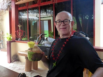 wir es gerne – erste Versuche auf der Hafenmole in Keyodhoo und Peter hat