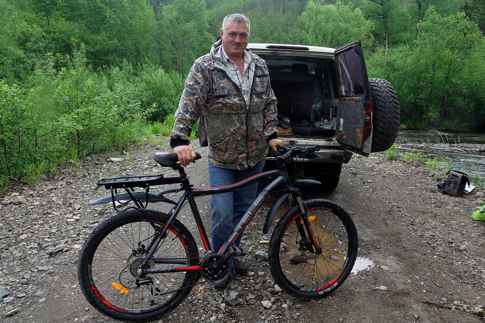 Ich überlege also, wie man eine Befahrung dieses Flusses realisieren könnte. Die entscheidenden Parameter sind dabei der Ein- und der Ausstieg. Zweiterer ist einfach, führt doch ein Stück vor der Mündung eine Brücke über den Fluss, wo über eine Schotterpiste die 100 km entfernte Kleinstadt Sovjetskaja Gavan erreichbar ist. Bei günstigen Bedingungen könnte auch eine Bootsfahrt entlang der steilen Meeresküste als Rückweg in die Zivilisation dienen. Bleibt die Frage nach dem Einstieg. Hier fallen im Luftbild helle Linien auf, die in abgeholzten Teilbereichen dieser Waldregion bis in die Nähe des Oberlaufs reichen – es handelt sich zweifelsfrei um Forststraßen. Ob und womit diese zu begehen oder zu befahren sind, kann ich leider nicht herausfinden. Also möchte ich es mit dem Mountainbike versuchen. Zuhause ja ein klassisches Fortbewegungsmittel auf Forststraßen (wobei sich hier wie dort die Frage der Legalität stellt), bietet ein geländegängiges Rad bei unbekannten Verhältnissen eine gewisse Flexibilität. Die Überquerung von Gebirgen, auf der einen Seite hinauf, auf der anderen per Boot hinunter, hat sich bei vergangenen Reisen als besonders lohnend erwiesen. Deshalb möchte ich vom Amur, auf der Nordwestseite des Sichote-Alin Gebirges starten, aus dem sich der Koppi nach Osten ins Japanische Meer ergießt, sodass sich die Rad- und Bootsstrecke zu einer Route vom Amur über die Berge bis zum Meer verbindet. Das Problem des hohen Gewichts – zu Beginn der auf vier Wochen anberaumten Tour ist von einem Gesamtgewicht von mehr als 40 kg exkl. Rad auszugehen – möchte ich durch Verwendung eines Rad-Anhängers lösen. In Chabarowsk am Amur wird also ein günstiges Mountainbike gekauft (der Anhänger war im Flugzeug mit), und Proviant gebunkert. Dann geht’s per Taxi noch 220 km den Amur stromab bis zur Siedlung Lidoga. Die Zusammenführung des Gepäcks, die Beladung des Anhängers und der Satteltaschen gestaltet sich spannend – wird ein sinnvolles Radfahren damit überhaupt noch möglich sein? Die Antwort ist ein klares jein: Also rollen tut das unförmige Gespann schon, aber die schwankende Fahrt würde ein Beobachter intuitiv wohl eher mit Wodka in Verbindung bringen als mit Radsport. |