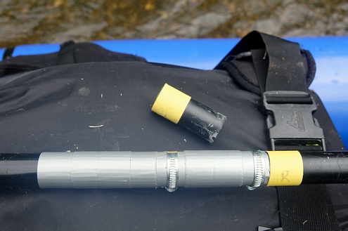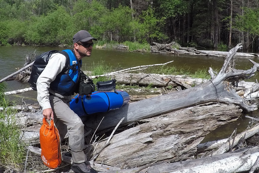 | Am nächsten Morgen starte ich – etwas nervös, wie sich Wasserstand und Befahrbarkeit wohl entwickeln – mit dem Boot direkt vor der Hütte. Der Iggu ist hier schon deutlich breiter und besser einzusehen, Verklausungen sind aber noch häufig, wenn auch in Abständen von vielen hundert Metern bis zu wenigen Kilometern. Bei der Portage des ersten Querbaums geschieht schon wieder ein großes Missgeschick, ich stürze auf das Paddel und es bricht. Die Nerven liegen blank, wie soll ich ohne Paddel so einen gefährlichen Fluss befahren? Glücklicherweise lässt es sich mit Tape und Schlauchklemmen reparieren und hält den Rest der gesamten Reise. Am folgenden Lagerplatz kommt erstmals auf dieser Reise ein Gefühl der Unbeschwertheit und Freiheit auf, und ich kann die Situation alleine in der Wildnis unterwegs zu sein richtig auskosten. Ich entfache ein Feuer – trockenes Treibholz ist trotz der nassen Witterung unter den vielen liegenden Stämmen problemlos zu finden. Und dann wird erstmals die Fliegenrute zusammengesteckt und versucht, die Standplätze und Köderpräferenzen der lokalen Fischfauna herauszufinden, was sich bei einem neuen Gewässer immer als besonders spannend gestaltet. Die hier vorkommenden Äschen stehen in recht rascher Strömung und zwei drei Exemplare lassen sich mit Nymphen rasch überlisten. |