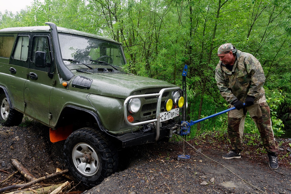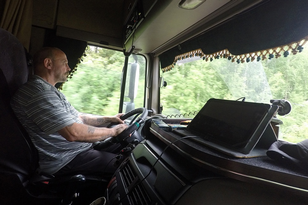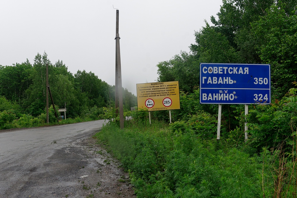 | Ich entscheide mich für Autostopp und schwenke den kaputten Reifen bei jedem passierenden Fahrzeug. Schon das zweite bleibt stehen, es handelt sich um einen schweren LKW. Aus dem Fenster blickt ein freundlicher Fernfahrer, der aus Smolensk stammt, im europäischen Teil Russlands nahe der weißrussischen Grenze. Gemessen an der Distanz bis hierher also von „fast zuhause“. Er ist mit einer Ladung Stahlträgern von St. Petersburg aus zur Insel Sachalin unterwegs, zurück wird er ohne Ladung fahren. Unterwegs wurde er von einem österreichischen Schwarzfischer mit einem Platten per Autostopp angehalten. Schon seltsam, was die Globalisierung so mit sich bringt. |