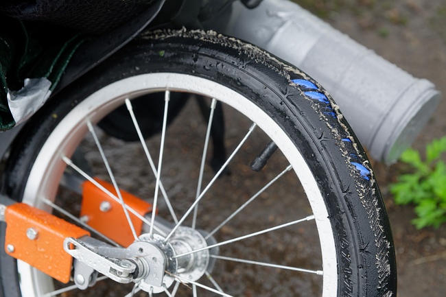auf. Allein unterwegs hatte ich keine Möglichkeit, das schiefe Laufrad