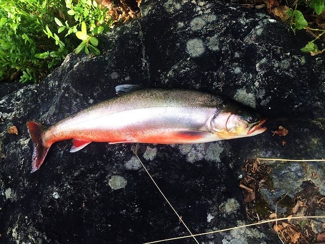 Gleich um die Ecke findet sich die Bergsjöån, schon ein etwas größeres Fließgewässer, der Fischbestand besteht hauptsächlich aus Äschen, Bachforellen kommen ebenfalls vor: |
