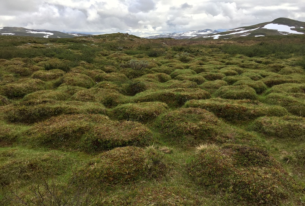 Wenn man ein Stück weiter bergauf geht, bekommt man eine Landschaft zu sehen, wo Rentiere weiden. |