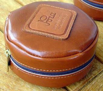 Preis: 43,-- €. Ebenfalls von POZO' kommen schöne Leder-Fliegenrollentaschen (siehe unten). Eine Größe (Durchmesser 10 cm, Höhe 5 cm) muss für alle reichen. Der Innenbereich ist ungefüttert. Ein umlaufender Reißverschluß sogt für einfaches Öffenen und Schließen des Etuis. Das Gewicht beträgt 30 Gramm. Kostenpunkt: 14,--€. |